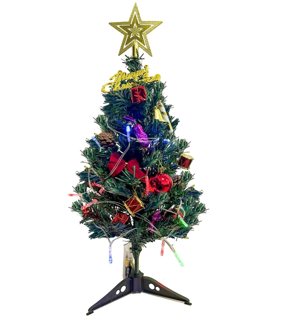 Brad artificial de Craciun cu ornamente Qilucky, PVC/plastic, multicolor, 50 cm