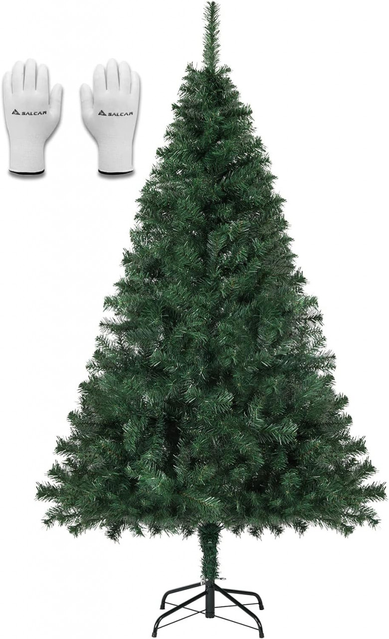 Brad artificial de Craciun Salcar, metal/PVC, verde, 126 x 240 cm
